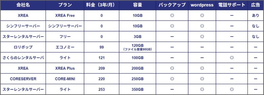 サーバー比較表