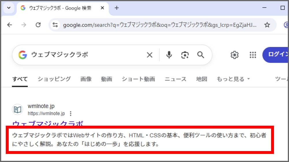 | 検索エンジン向け | ページの要約を伝えることで、Googleなどの検索結果に表示される説明文に影響します |