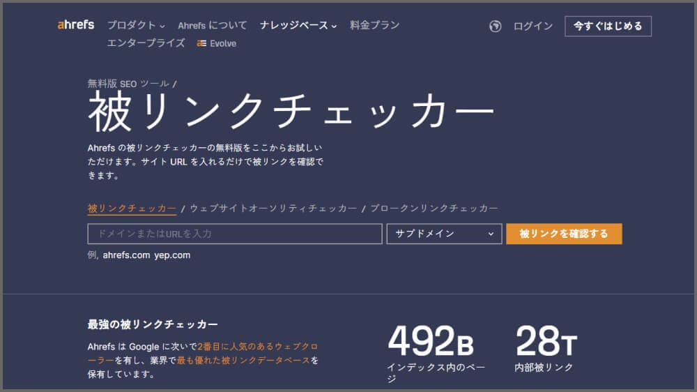 被リンクを調べたいサイトのURLかドメインを入力するだけで確認できます。