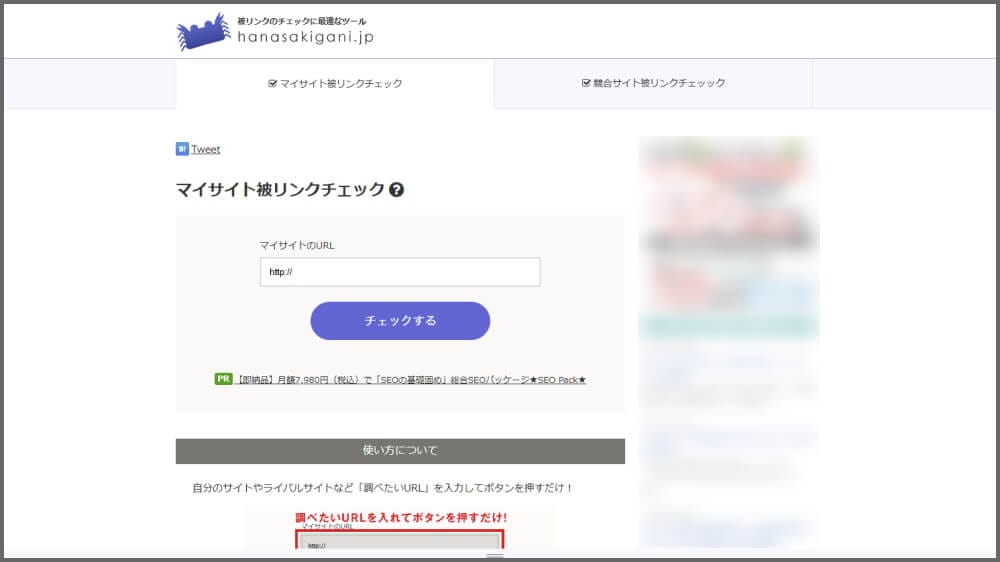 hanasakigani.jp(はなさきがに)は、被リンクの数・種類・元サイトの情報をチェックできる国産のSEO分析ツールです。